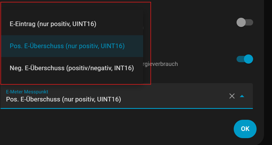 Kurze Nachfrage zur PV Überschuss Einstellung des E-Meter Konfigurationsart .. da habe ich ein weißes Feld und kann nichts auswählen.
